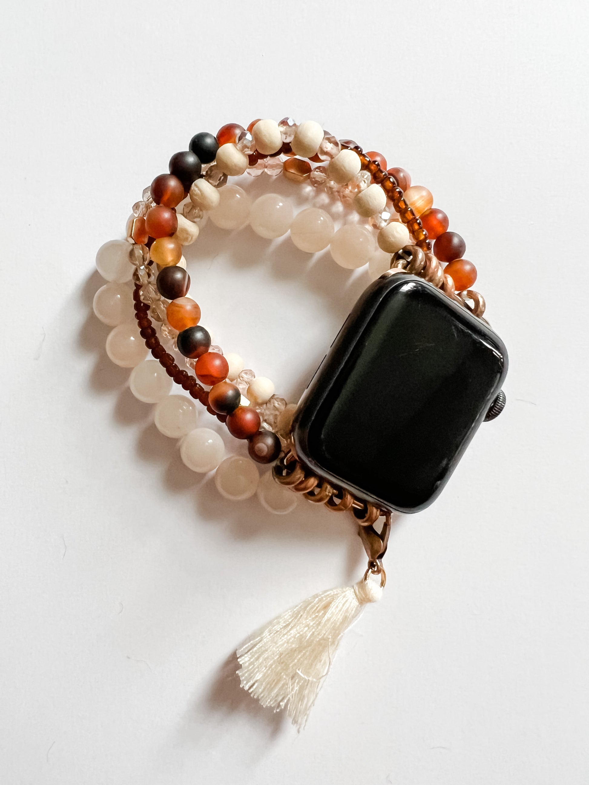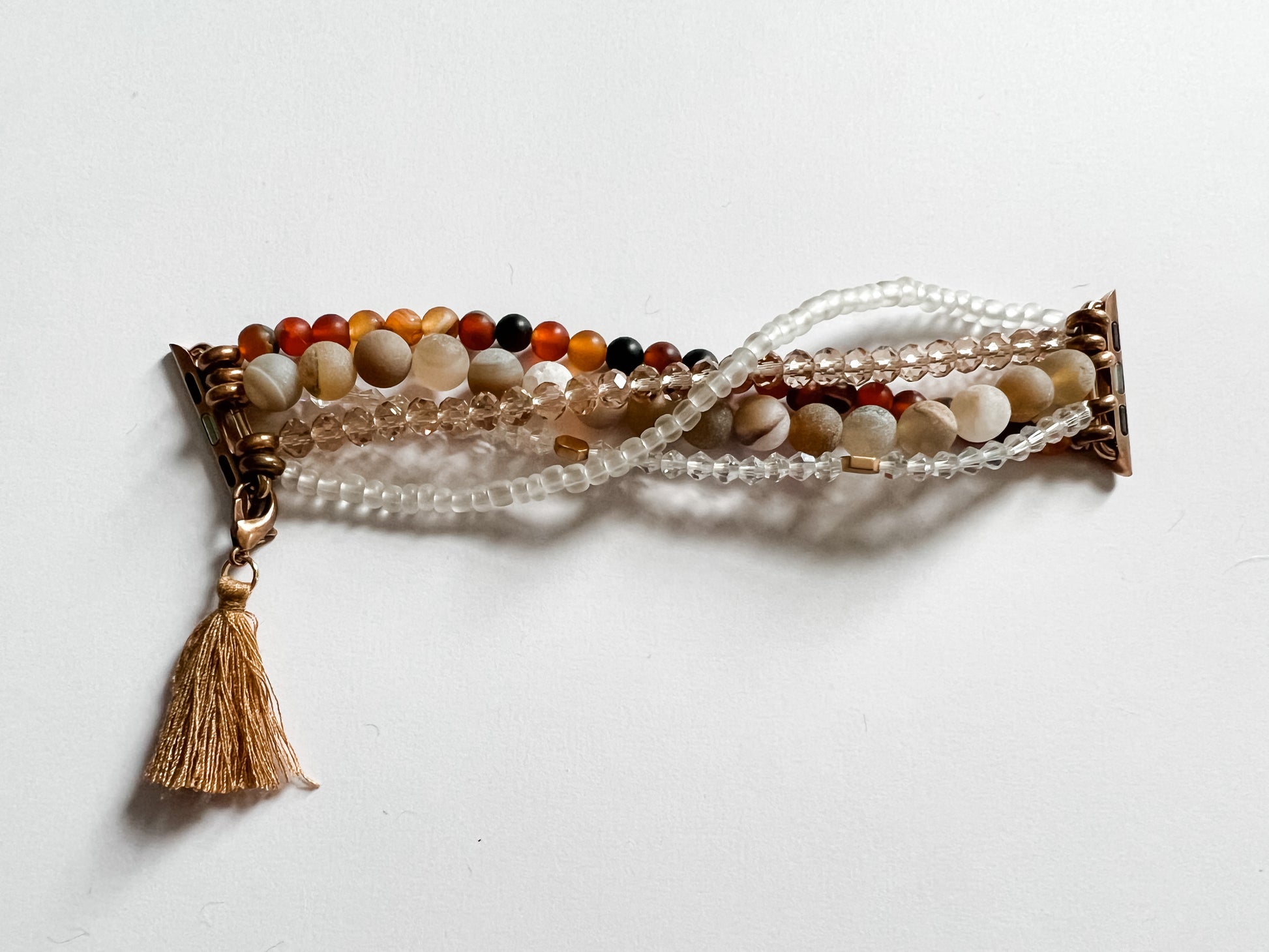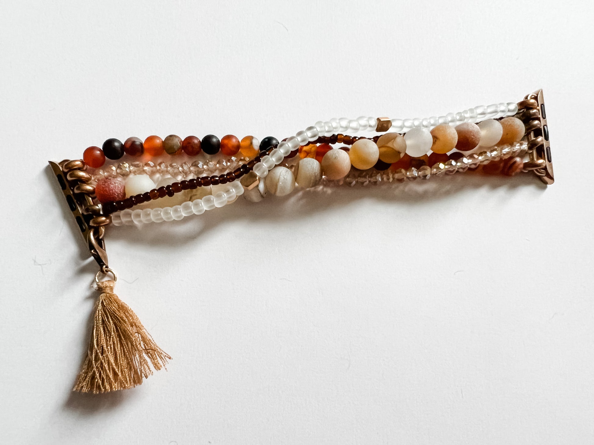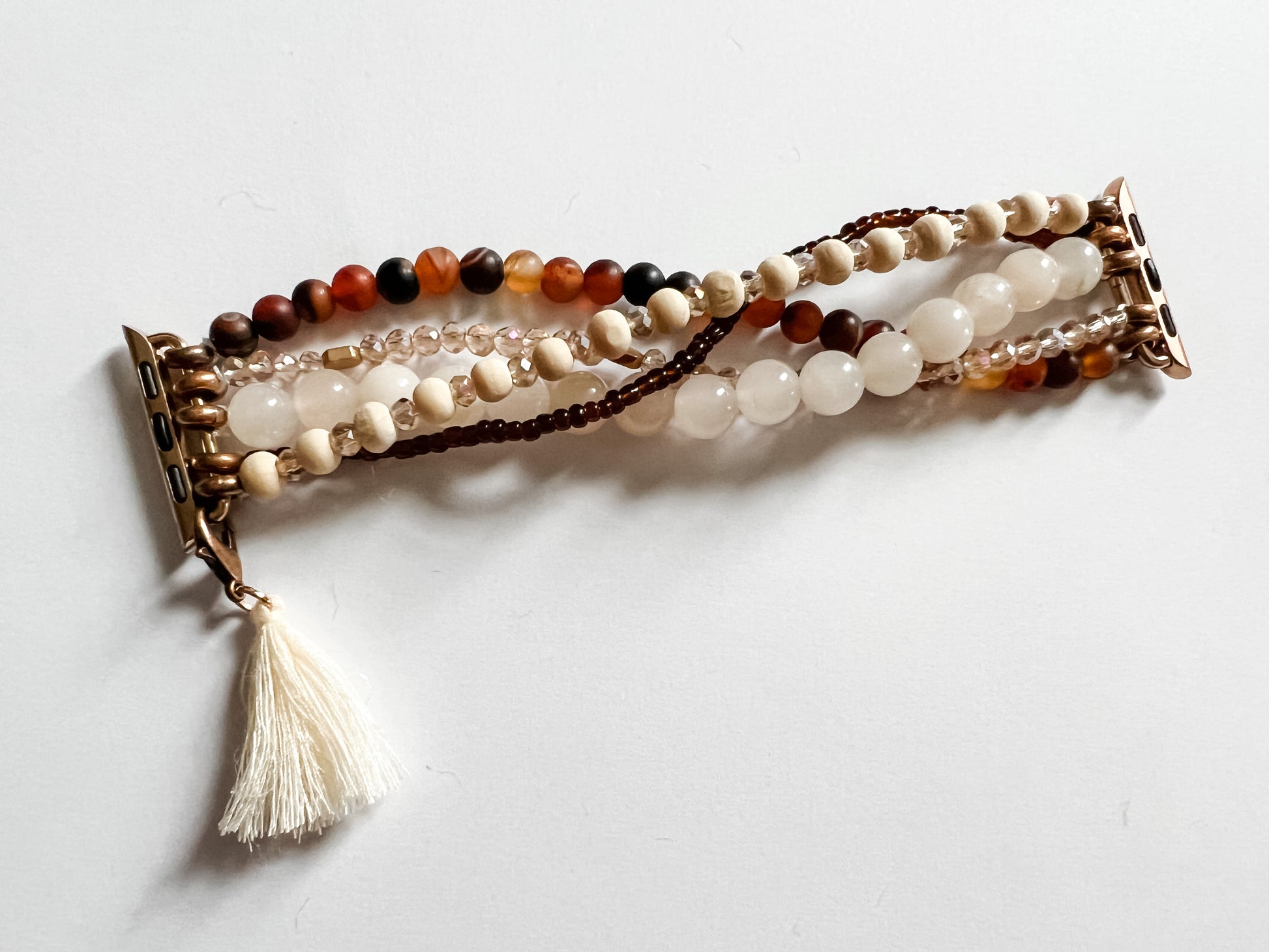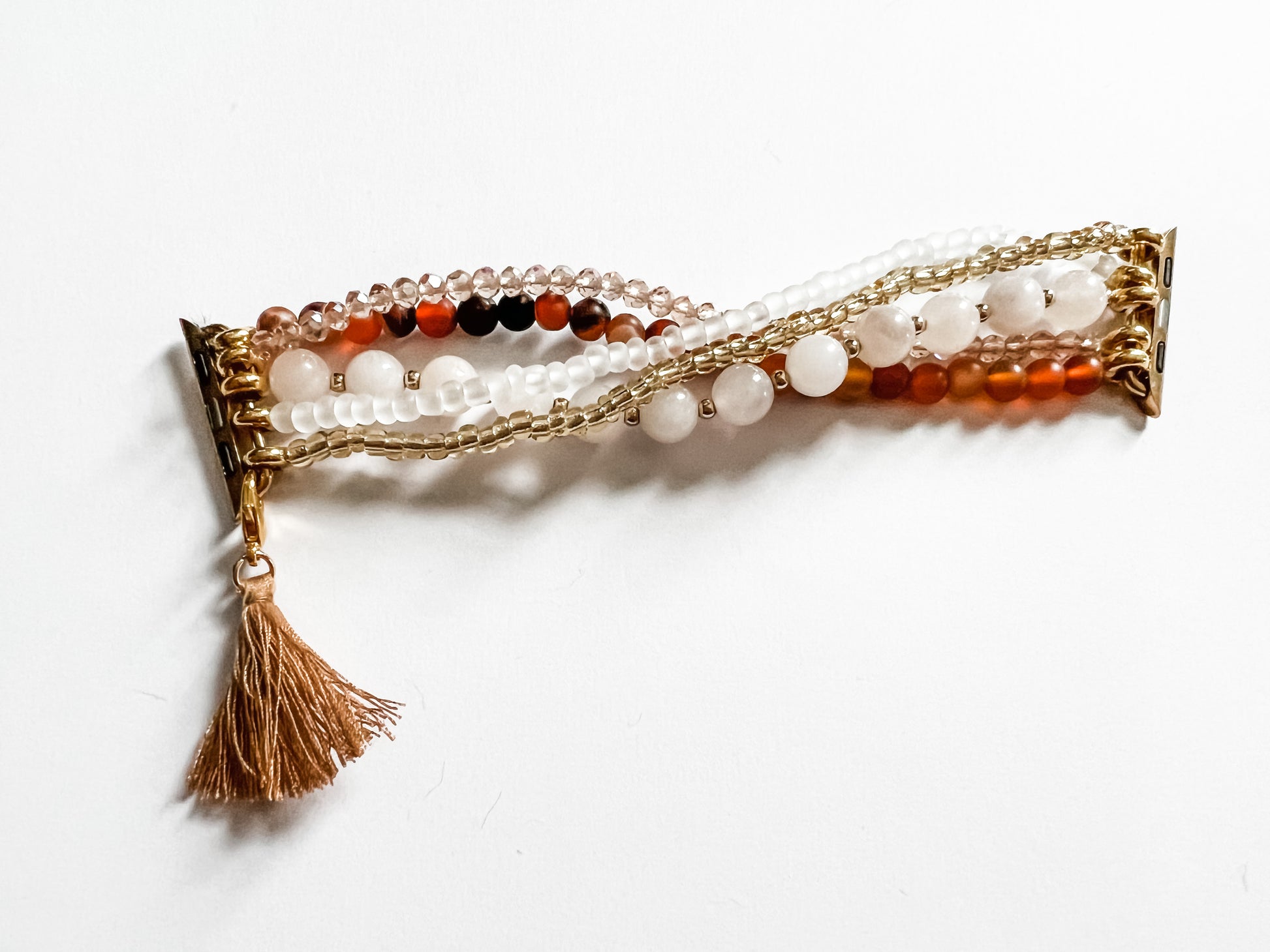 This handmade beautiful band for the Apple Watch features a beaded elastic design to enhance your watch and give it an elegant look.